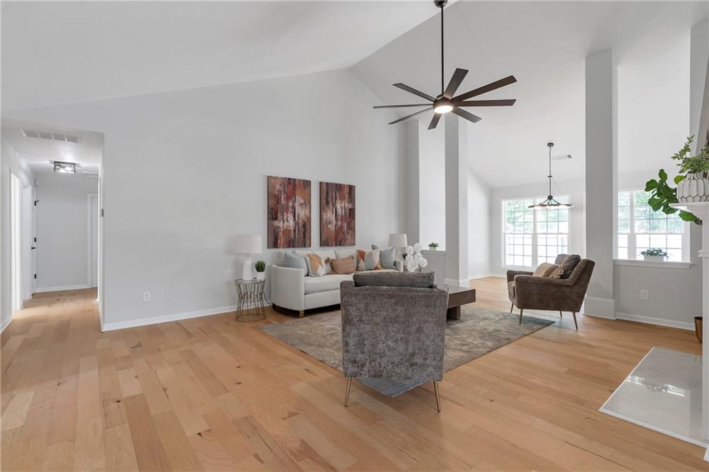 Get ready to fall in love with this fully renovated ranch-style stunner in the highly sought-after Summit at North Cliff community! Boasting 3 spacious bedrooms PLUS a huge bonus room above the garage (perfect as a 4th bedroom, home office, gym, game room, or media room!), this home offers flexibility and style. Step inside and be wowed by the all-new engineered hardwood flooring, new kitchen with quartz countertops, new bathrooms, and new designer plumbing and lighting fixtures throughout. A separate dining room and an additional flex area next to the living room that is wrapped in windows provides all the space you'll need! The oversized primary suite is a true retreat, with tall vaulted ceilings and a spa-like en-suite bath complete with dual vanities, a luxurious free-standing soaking tub, and new tiled shower. Two additional main-level bedrooms provide cozy comfort for family or guests. Additional upgrades include: Brand new roof, New garage door & motor, New toilets, newer water heater, and newly serviced HVAC. Outside, enjoy a fully fenced, private backyard with with freshly installed sod—ideal for pets, play, or simply relaxing in your own private oasis. As a resident of Summit at North Cliff, you’ll enjoy resort-style amenities like a community pool, tennis courts, and a playground, all designed to support an active lifestyle and vibrant neighborhood connection. Plus, with Tribble Mill Park just 4 miles away, your weekends are set with boating, biking, and wooded trails. All this, and you're located in the award-winning Archer School District, and just minutes from the shops, dining, and entertainment of historic downtown Lawrenceville. Schedule your showing on this turn-key beauty today and make this dream home yours! Don't miss the 3-D tour!